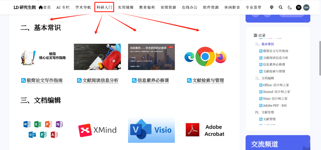 该版块具体包括上网必备工具、科研基本常识、常见文档编辑、中英文献处理、论文公式编辑等5个部分,主要是为了帮助科研小白迅速完成0到1的跨域。