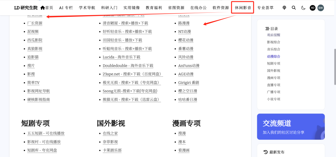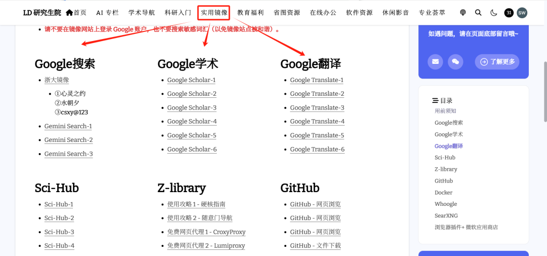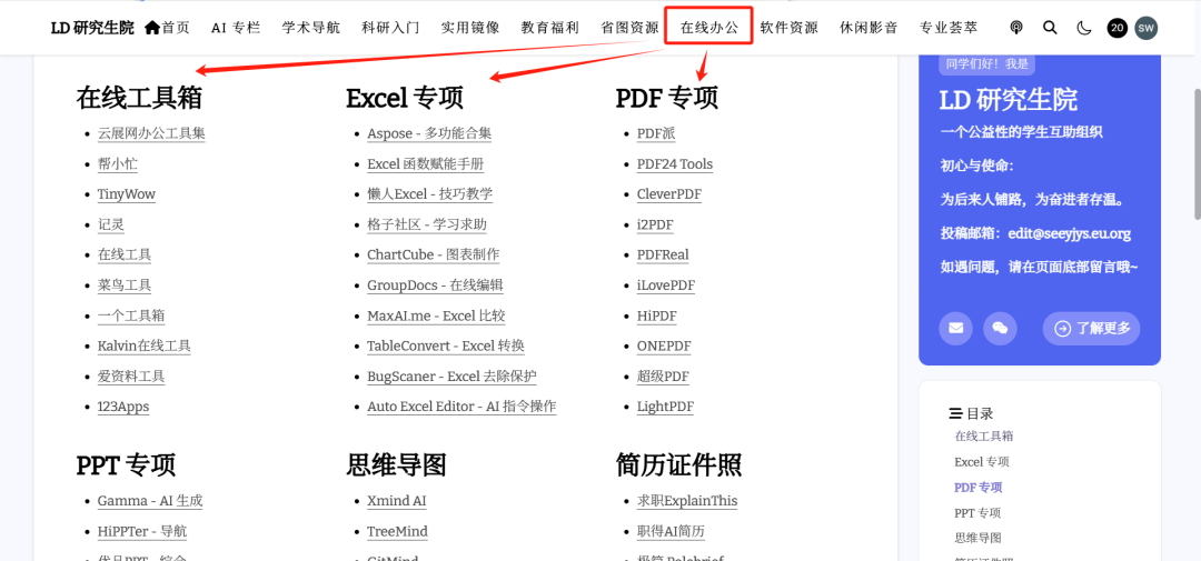 作为站点的重点功能区之一,现已全面涵盖以下10大功能页面:AI专栏、学术导航、科研入门、实用镜像、教育福利、省图资源、在线办公、软件资源、休闲影音、专业荟萃。