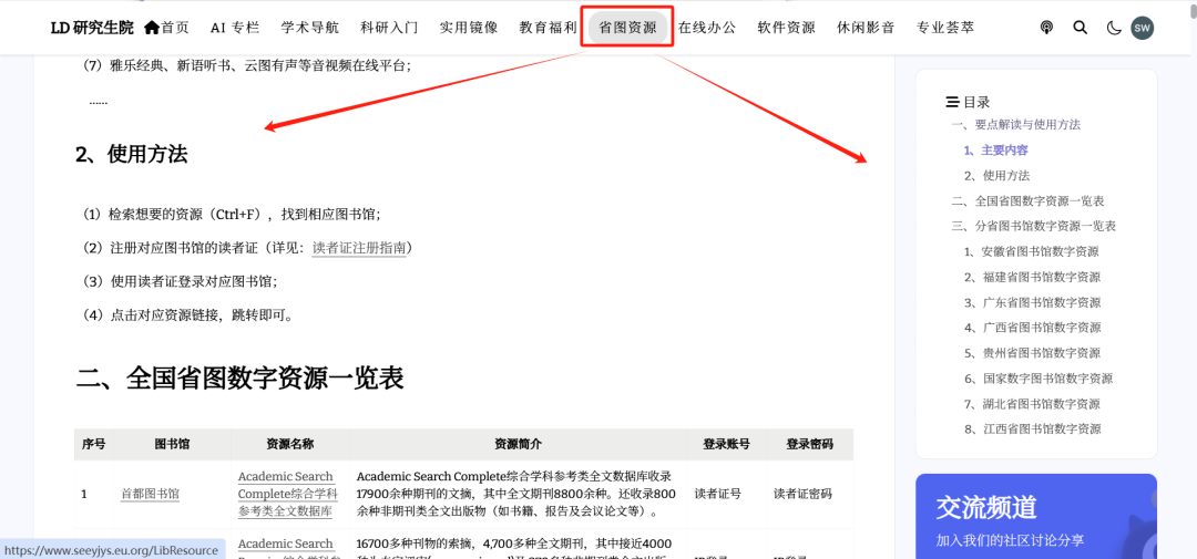该版块主要介绍全国14个省级及以上开放数字图书馆的丰富在线资源、读者证注册方法及其使用方法。