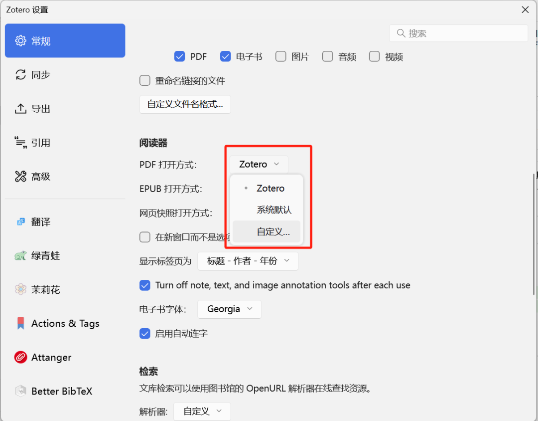 支持自定义阅读器,用户可以利用Zotero+文献阅读器,实现文献阅读的丰富性与多样性,不习惯用Zotero原生阅读器的同学不用担心啦,一切都可以是熟悉的味道~