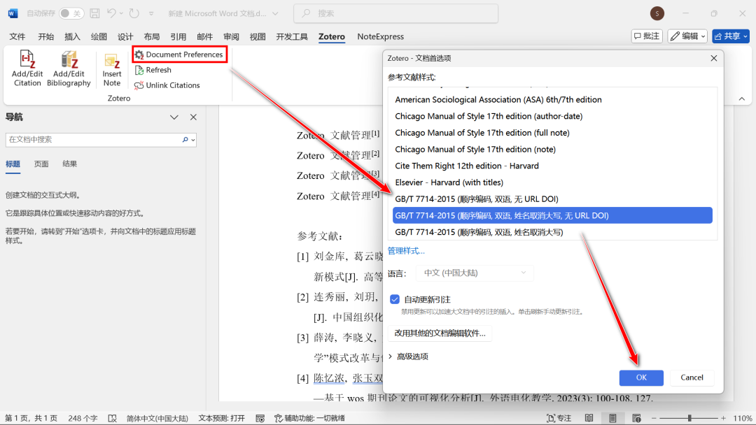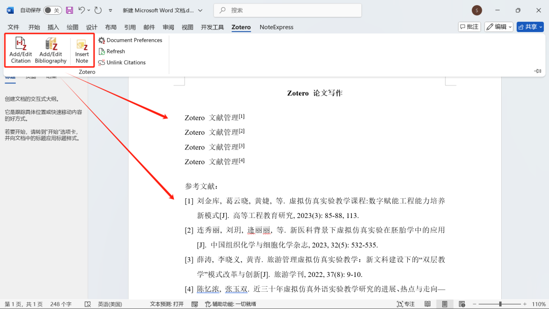 (1)将待引文献、所写笔记、参考文献以期刊要求格式插入Word文档,并自动完成引用次序的编排;