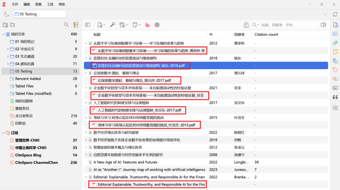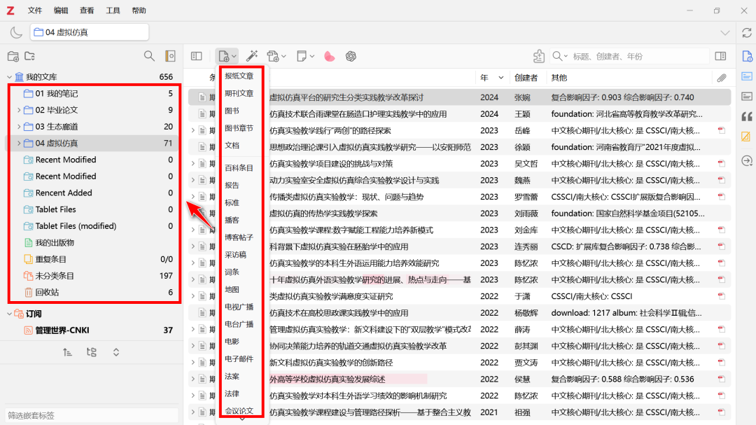(1)建立本地文库,对中外文文献记录进行有序整理、自动下载与类别划分;