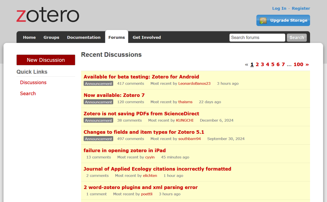 当出现因软件更新、插件不兼容或未知Bug所导致的难题,而你又无从查起时,不妨前往 Zotero官方论坛进行反馈与讨论,这里汇集着众多开发人员,相信能够为你排忧解难。