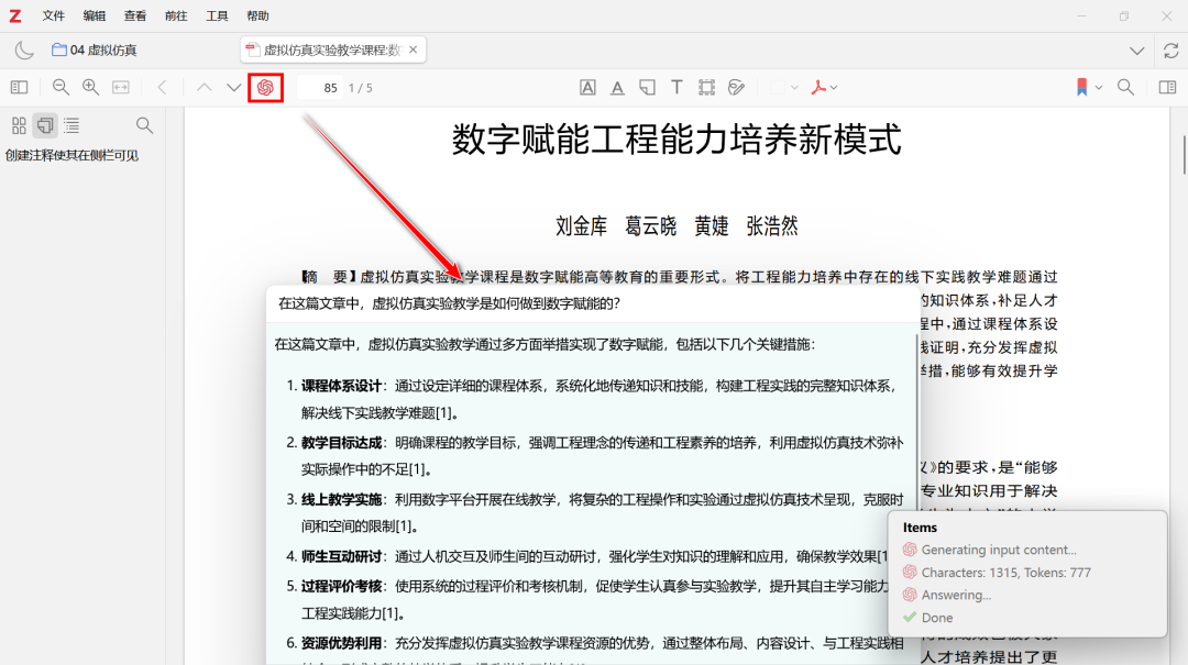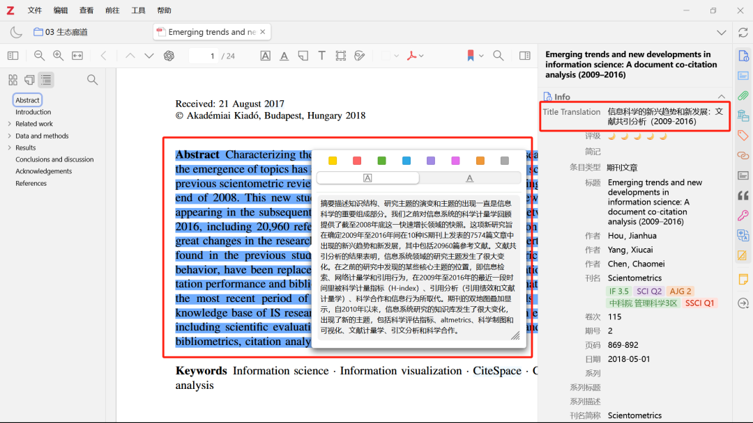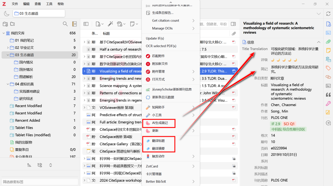 (2)批量翻译、简记与标签化题录信息,辅助进行论文初筛工作;