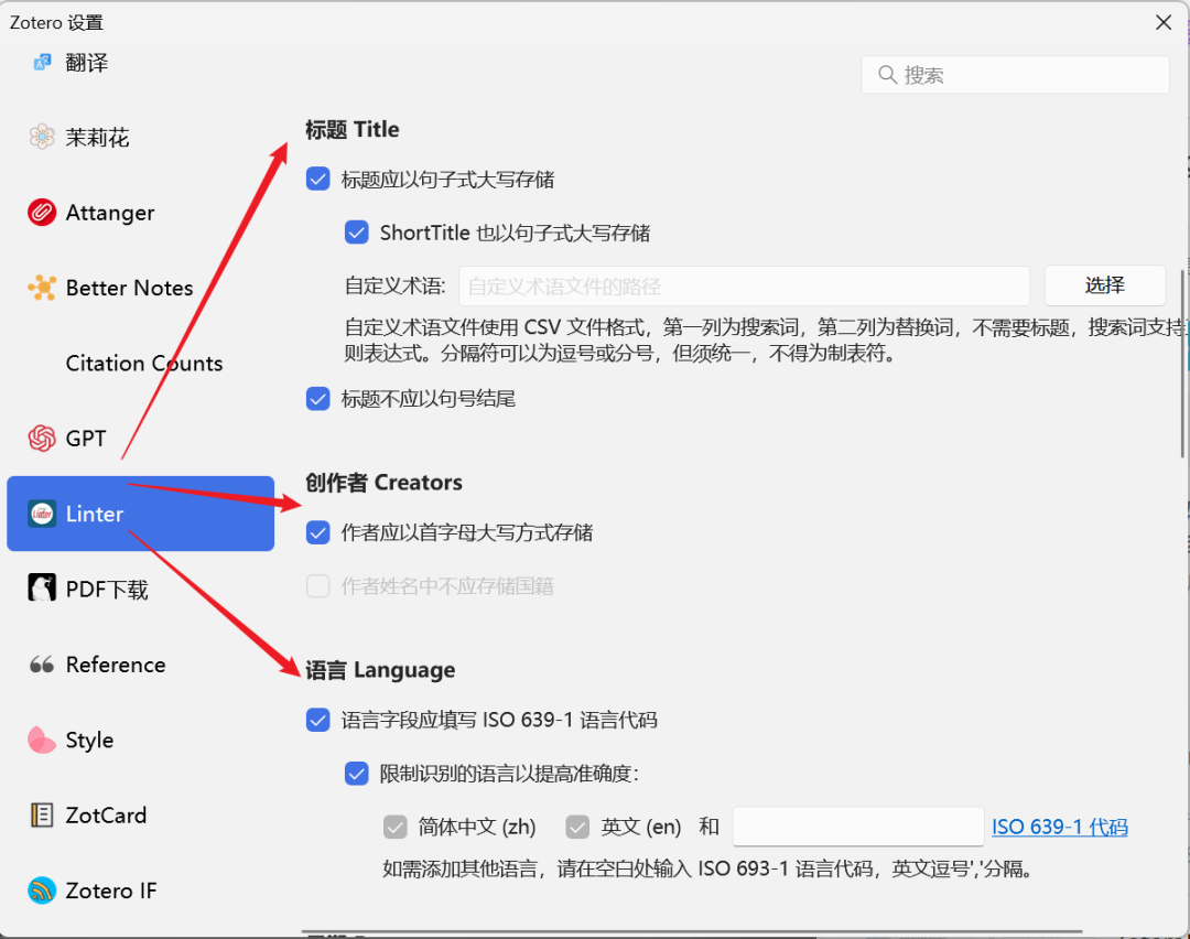用户从中国知网、Web of Science、Pubmed等引文数据库导入题录后,首要进行的工作便应当是题录信息的规范化,这样做的好处是:从源头上规避后续因作者名称、语言、标题及期刊大小写不规范等带来的诸多引用错误。Linter支持按用户需求对上述题录信息进行一键转换,自动化处理一应繁琐步骤。