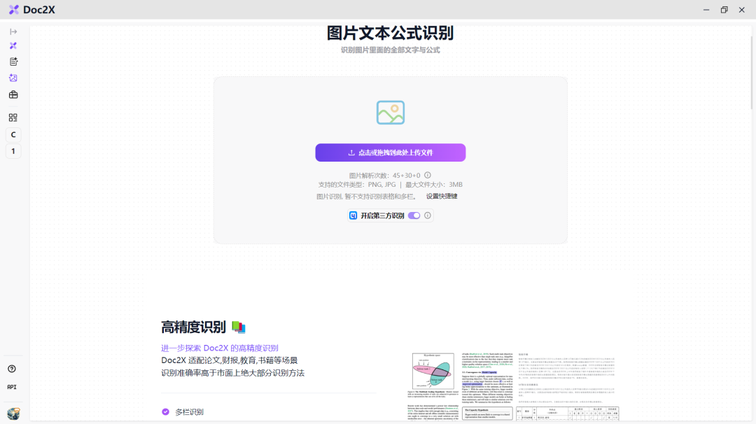 同理,与Doc2X网页端相对应,能够实现网页端所有功能,并与网页端共享识别额度。