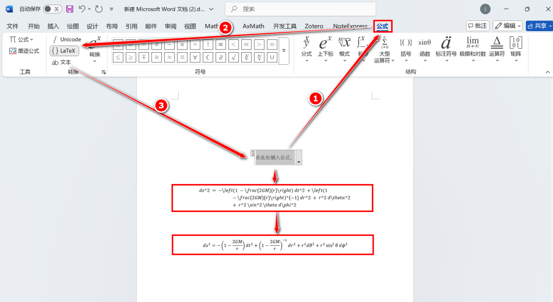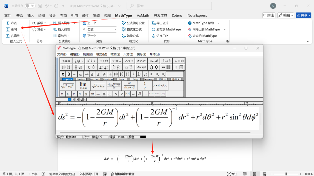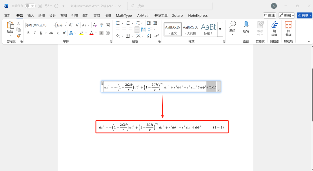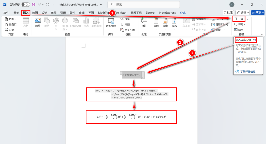 获得公式代码后,输入MsOffice / WPS 内置的公式编辑器或MathType等第三方公式编辑器进行微调,之后便可插入文档的指定位置进行排版了。