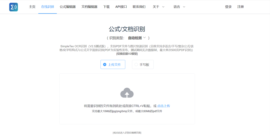 官网: https://www.simpletex.cn/ai/latex_ocr