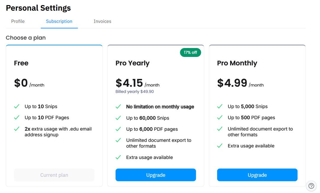 MathPix,一款来自国外的业界标杆产品,其识别精度极高,且支持PDF识别,但需注册使用。普通用户免费额度为10次/月,教育认证用户20次/月,所有额度多端共用。由于次数有限,不想花钱的朋友,建议将复杂公式汇集在一处,然后统一做一次识别;或者将带有公式的PDF页面重新组织成10页以内的PDF文档,上传后再统一进行识别。