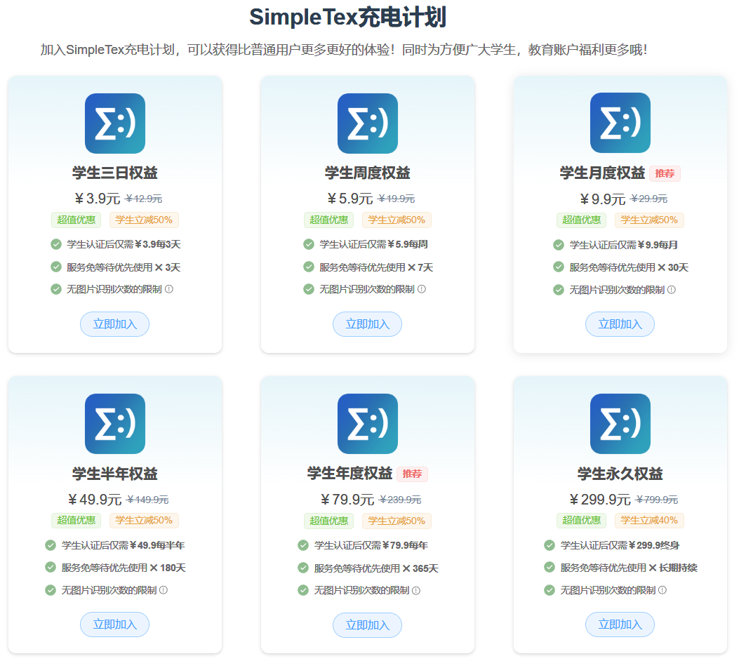 付费套餐相对亲民,教育认证后还可享五折优惠,具体见下图: