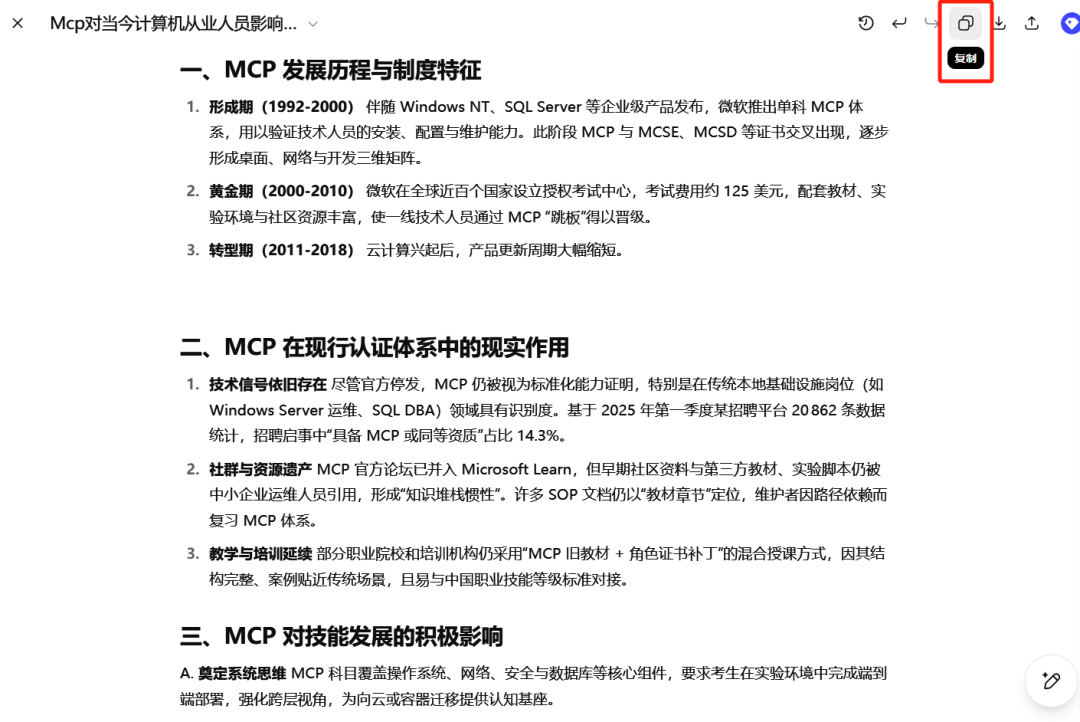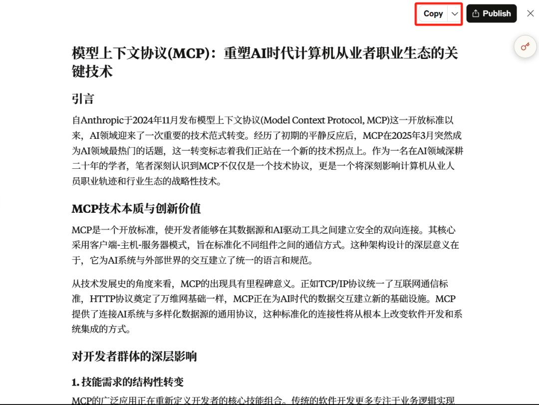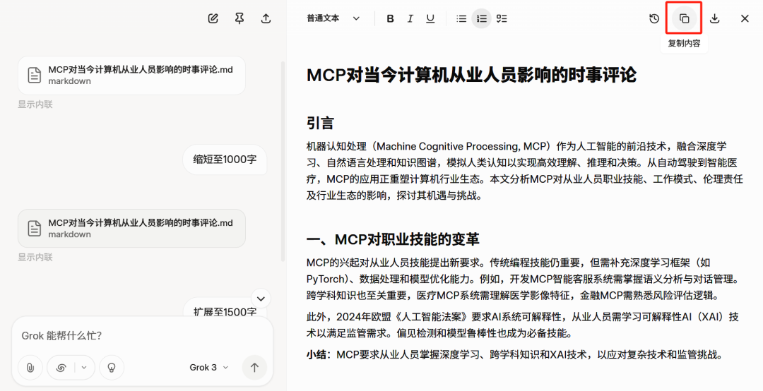 是不是这样:打开对话框,输入一个指令,等AI吐出一大段文字,然后「 Ctrl+C 」复制,再「 Ctrl+V 」粘贴到Word或文档里。结果发现,格式全乱了,内容也不太对劲。于是,你又回到对话框,重新输入指令,再次复制粘贴……如此循环往复,最终在一堆零散的文本和混乱的思绪中彻底崩溃。
