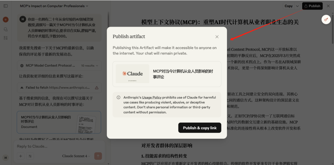 Claude的Artifact功能,主打一个“少即是多”。它的界面最简洁,但有一个非常实用的杀手锏。