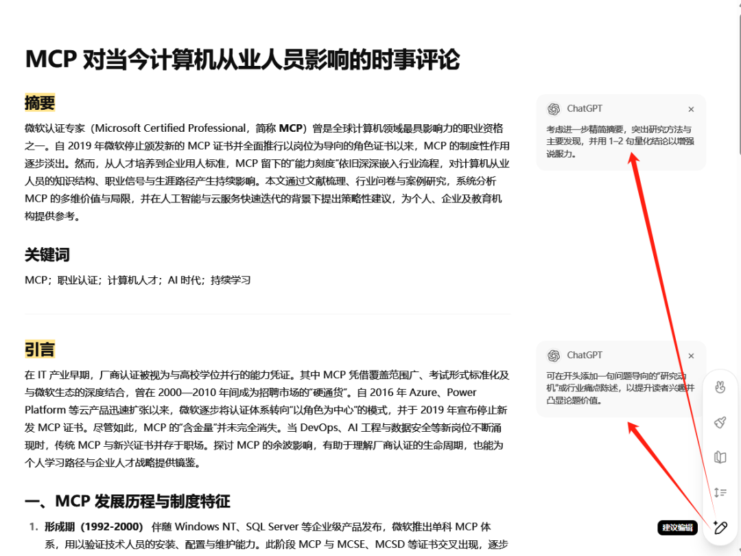 主要包括询问ChatGPT、更改文字样式、人为修改文字。