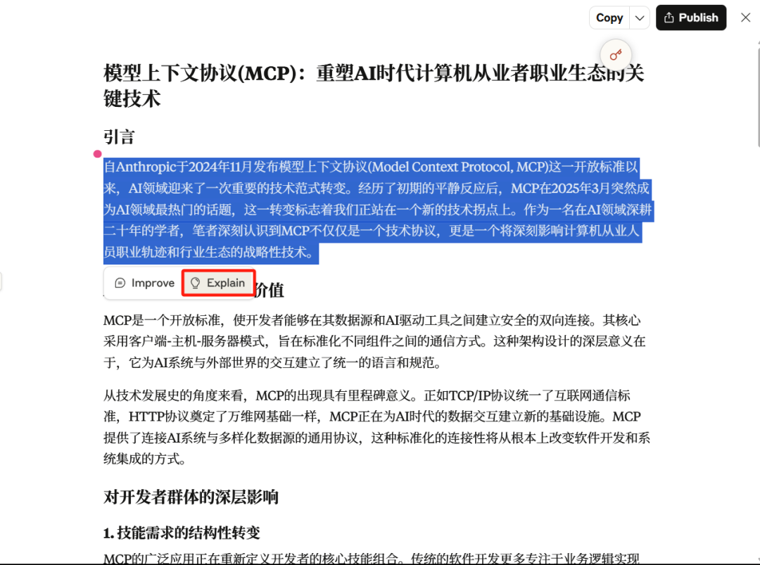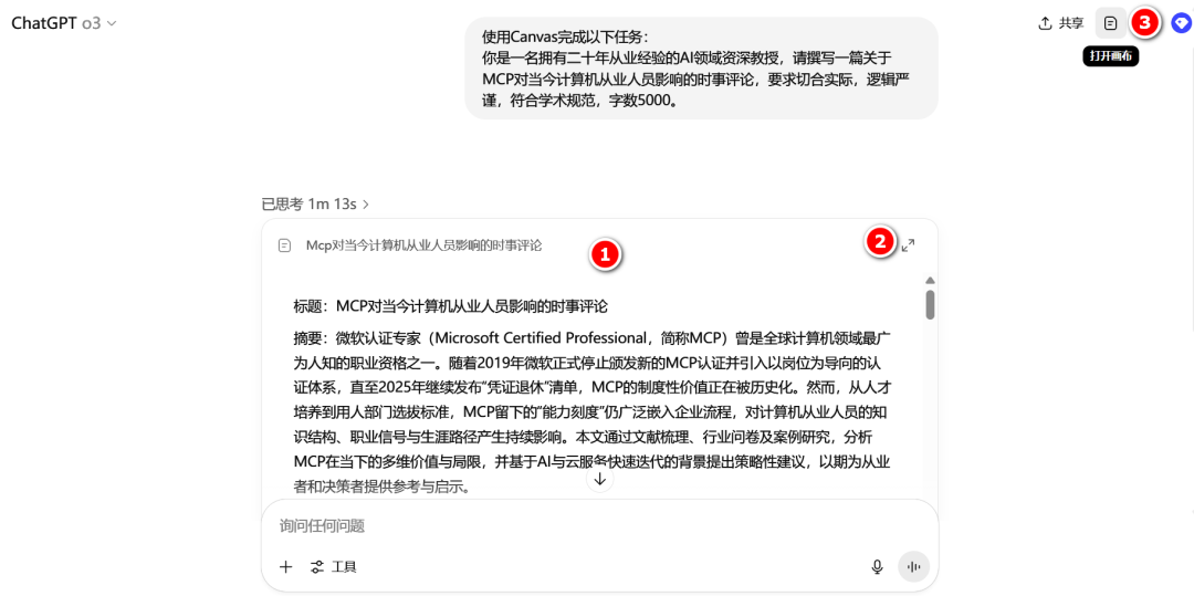 “画布模式”的核心,是把AI从一个“问答机器”,变成了一个能与你并肩作战的“写作伙伴”。 你不再是被动地接收信息,而是主动地、精细地掌控整个创作过程。根据我的使用经验,个人推荐的“黄金工作流”是: