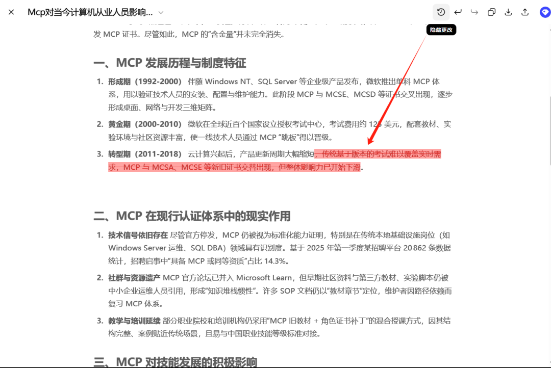 每一次修改都有记录,随时可以“一键穿越”回任何历史版本,安全感满满。 主要包括:显示/隐藏更改、还原历史版本、保留最新版本。