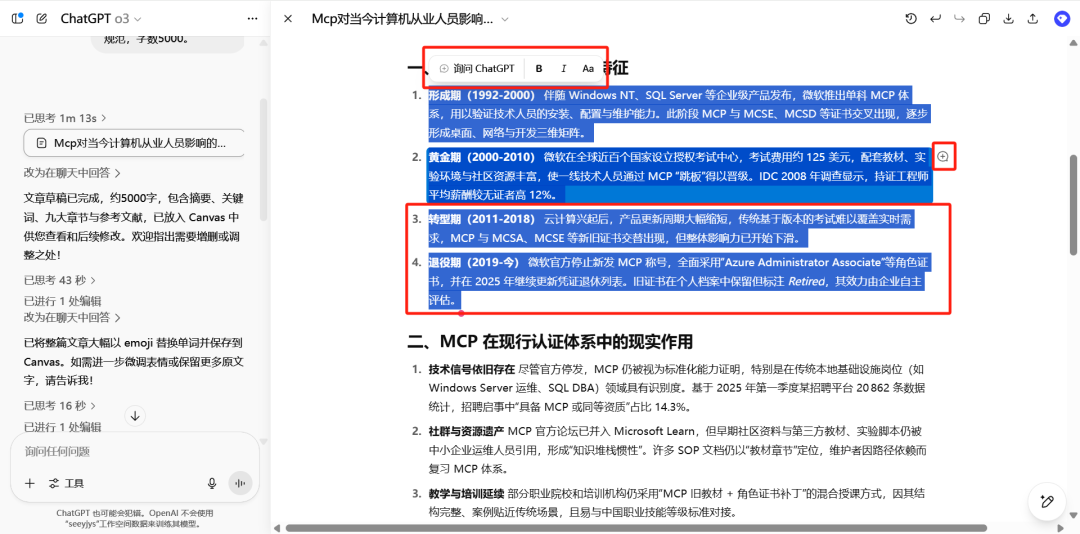 先从大家最熟悉的ChatGPT开始。它的Canvas模式,就像把你的写作工具从一支时常断墨的中性笔,直接升级成一个功能齐全的专业工作台。