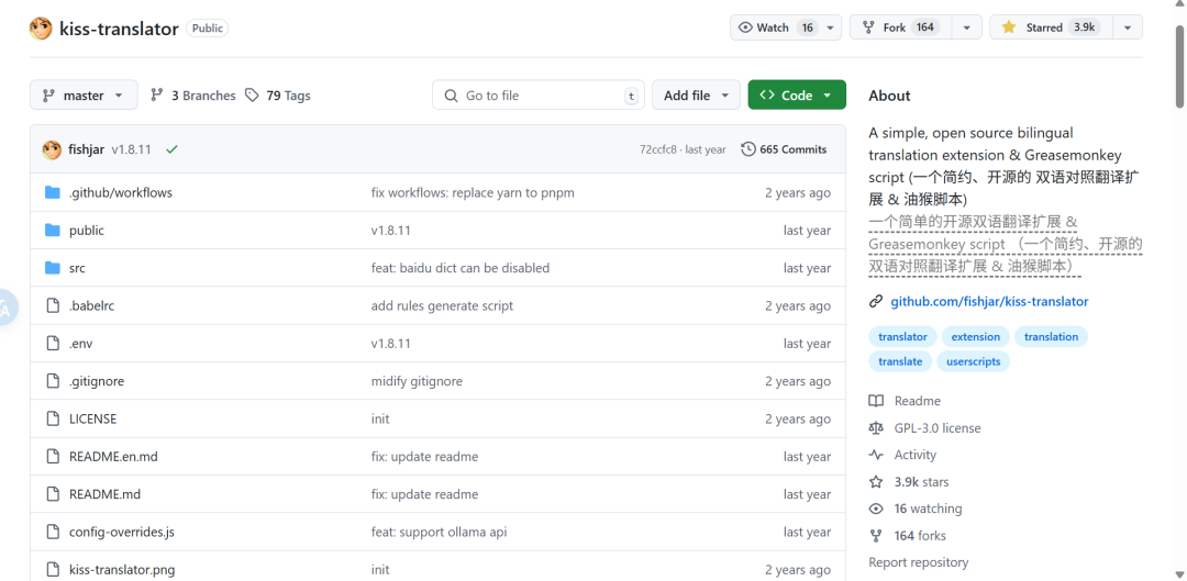 推荐理由:代码开源,其追求极致的简约和高效。没有繁杂的设置,同步支持划词翻译、输入框翻译、网页双语翻译,响应速度飞快,适合追求“轻量化”的效率党。