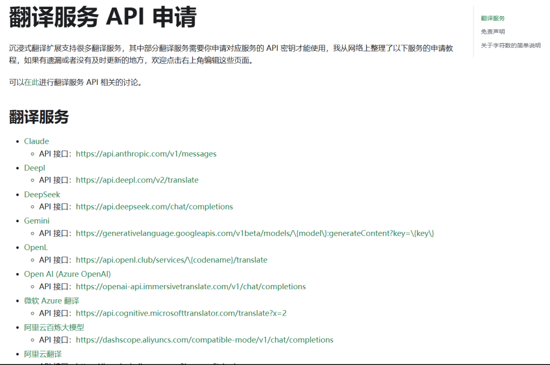 翻译源API申请教程:https://immersivetranslate.com/zh-Hans/docs/services/