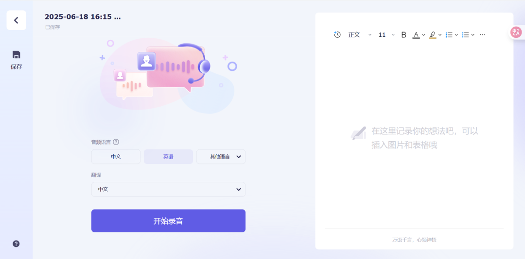 简单省事,还是推荐通义听悟,其支持实时识别、同步翻译、智能总结、多格式导出。