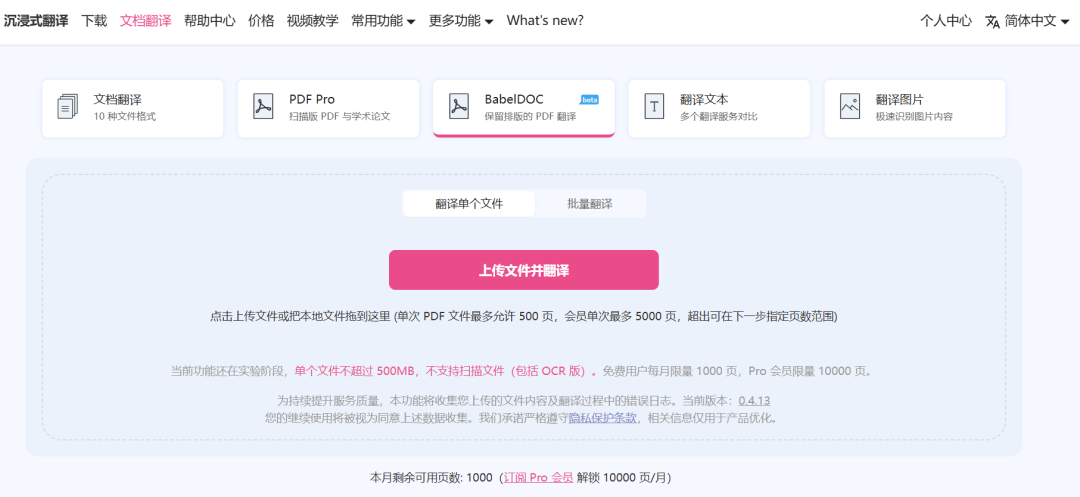 普通文档翻译:https://app.immersivetranslate.com/file/