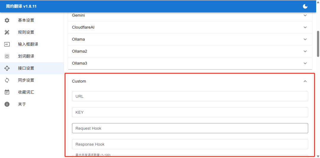特别值得一提的是,简约翻译插件支持自定义AI翻译API,这意味着我们也可以使用第三方中转API来进行翻译。