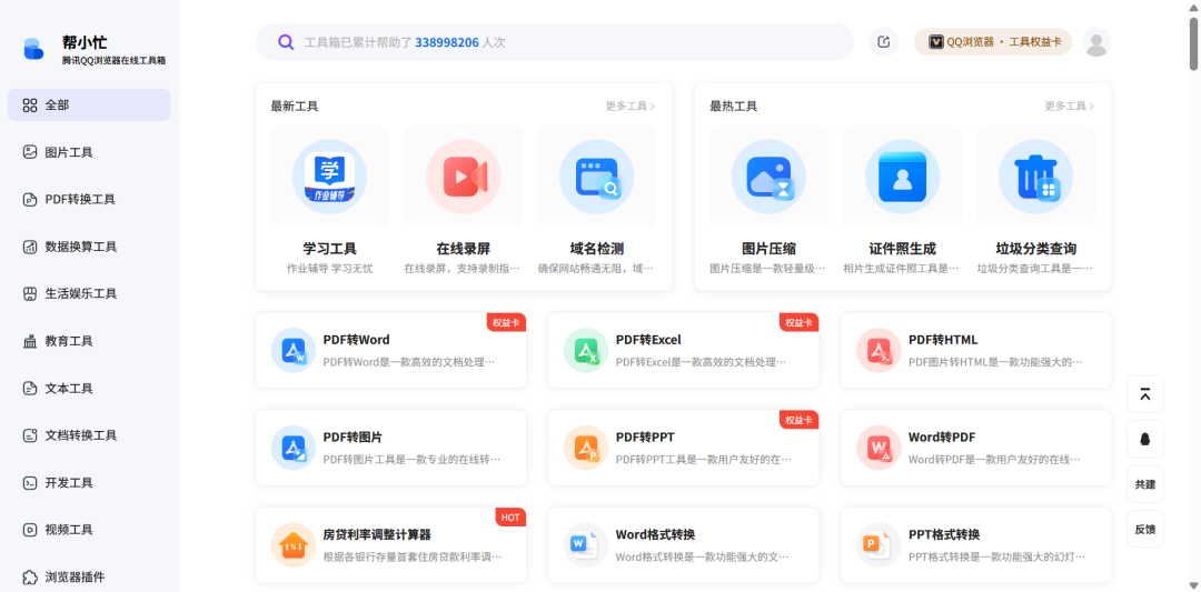 使用之前记得看一下工具右上角的标签,如果是什么权益卡、QQ浏览器、搜狗之类的文字,就慎入,大概率要你交钱!
