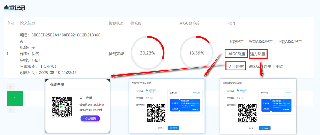 套路三:醉翁之意不在“查”—— 高价“降重”才是目的